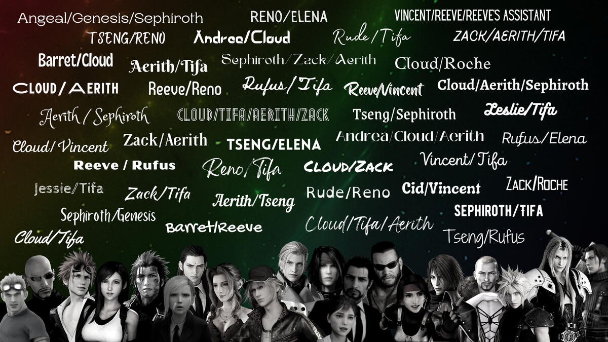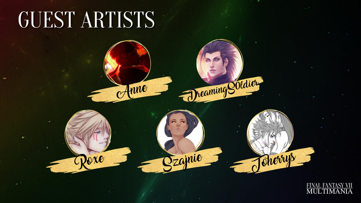 Hello and welcome to FFVII Multimania, a non-profit zine project celebrating shipping in the Final Fantasy VII fandom. We aim to give as many ships as possible a platform/zine experience and raise money for Cybersmile, an international charity that supports victims of cyberbullying.
