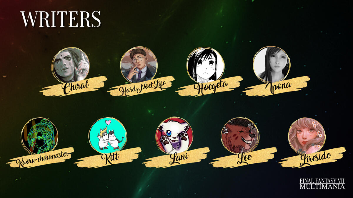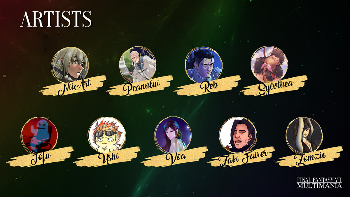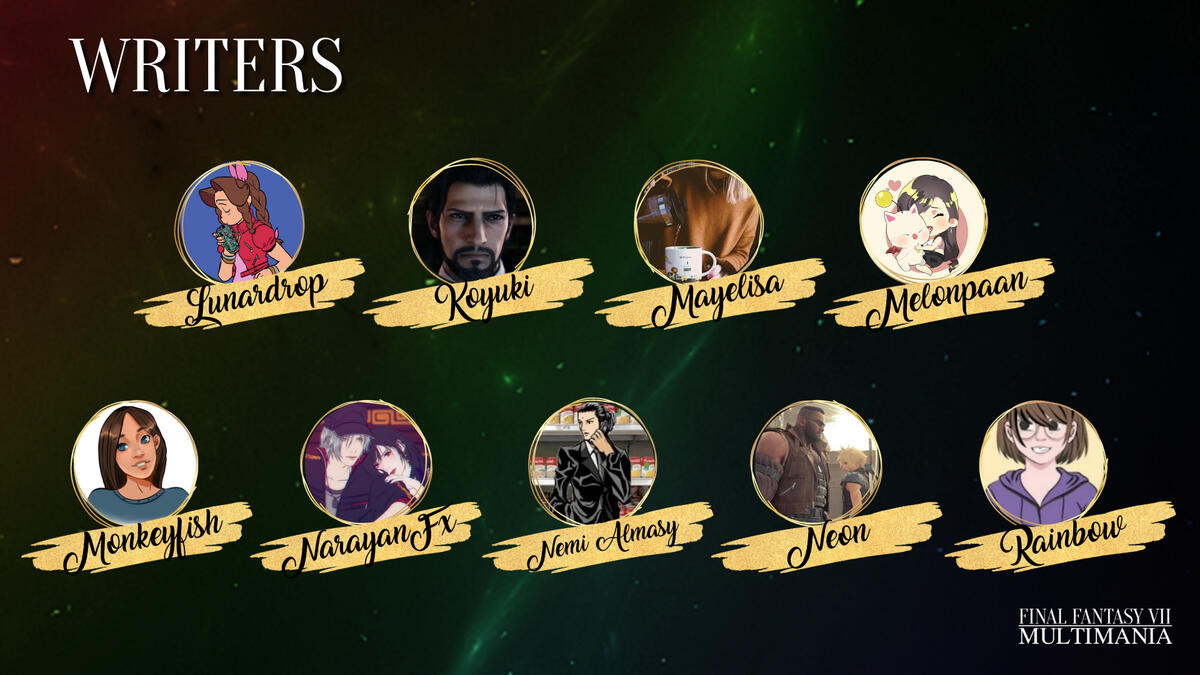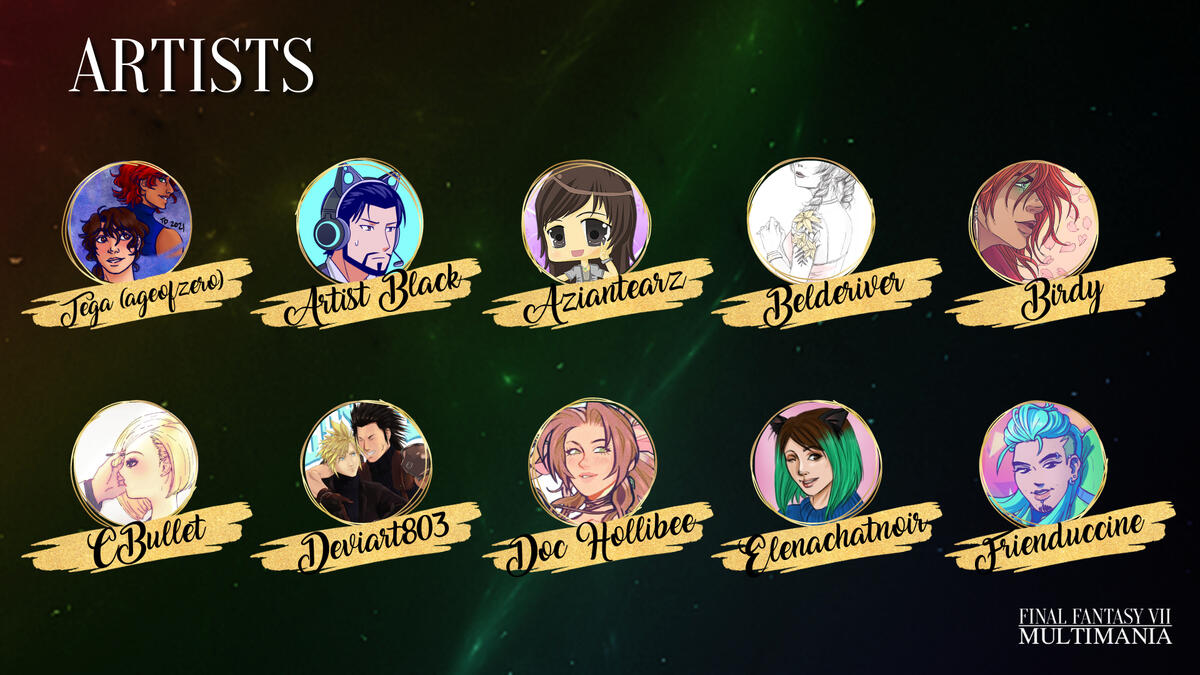 Hello and welcome to FFVII Multimania, a non-profit zine project celebrating shipping in the Final Fantasy VII fandom. We aim to give as many ships as possible a platform/zine experience and raise money for Cybersmile, an international charity that supports victims of cyberbullying.
